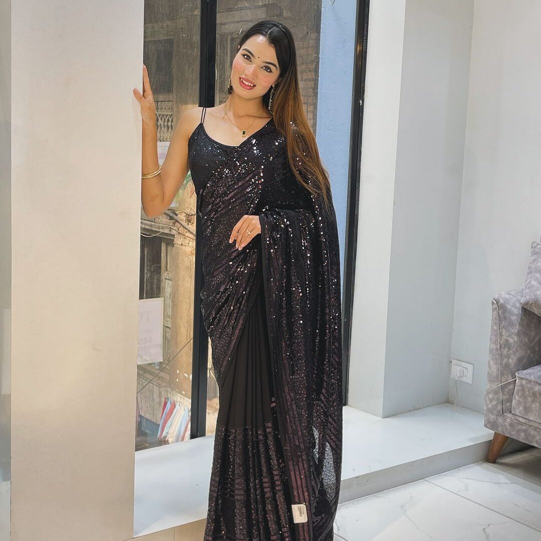 Bollywood Glam Sequins Saree | Heavy Embroidery, Party-Wear Ready