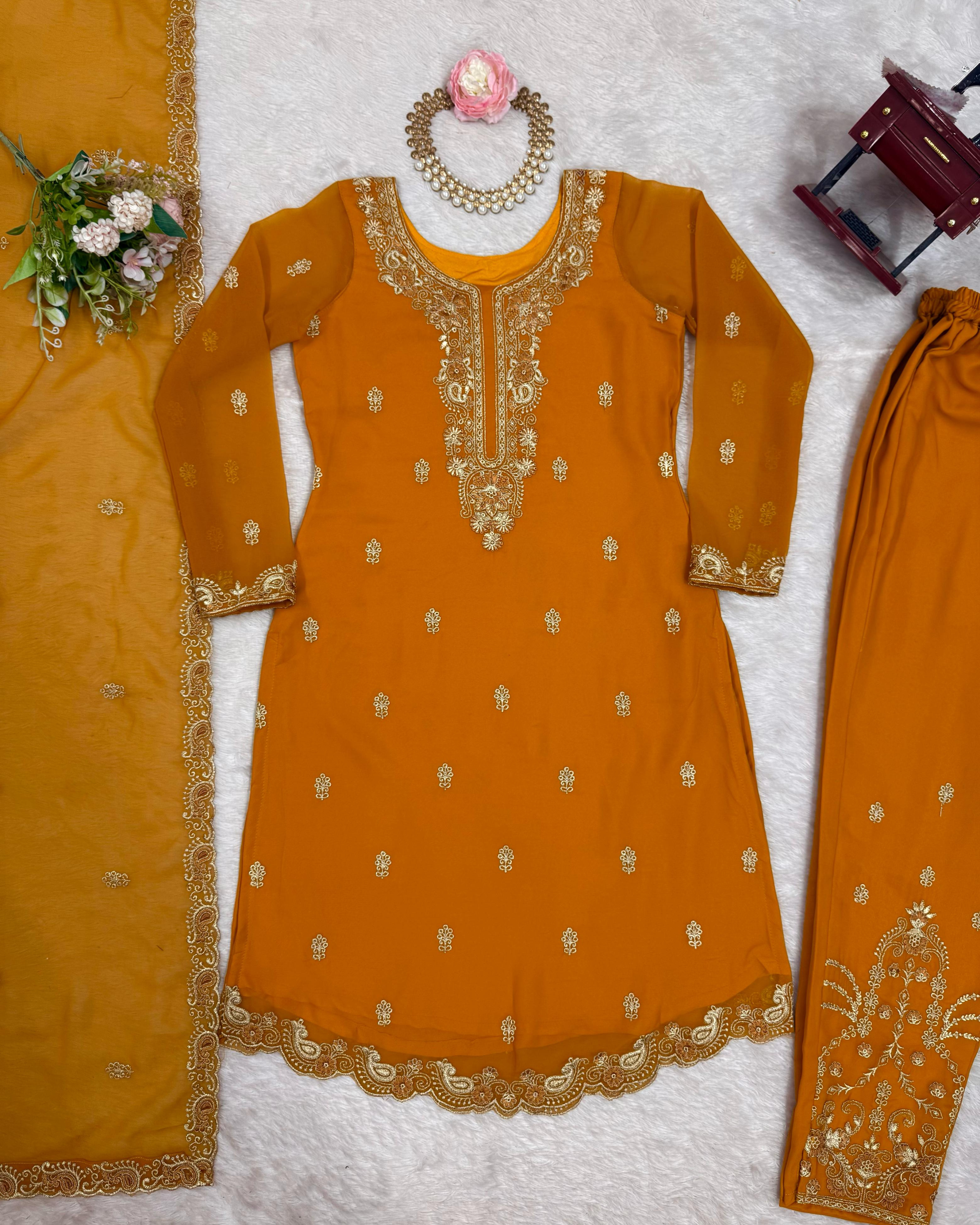 ✔️ Complete 3-piece set – Top + Palazzo + Dupatta